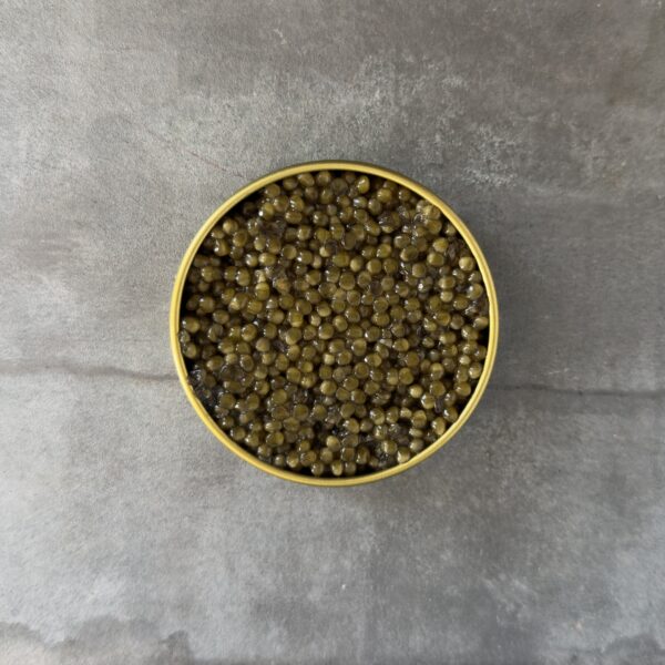 The caviar is matured for 8 weeks in Prunier’s original maturation tins and salted at 3 percent. The eggs vary in color from amber to dark brown and have a firm yet creamy texture.