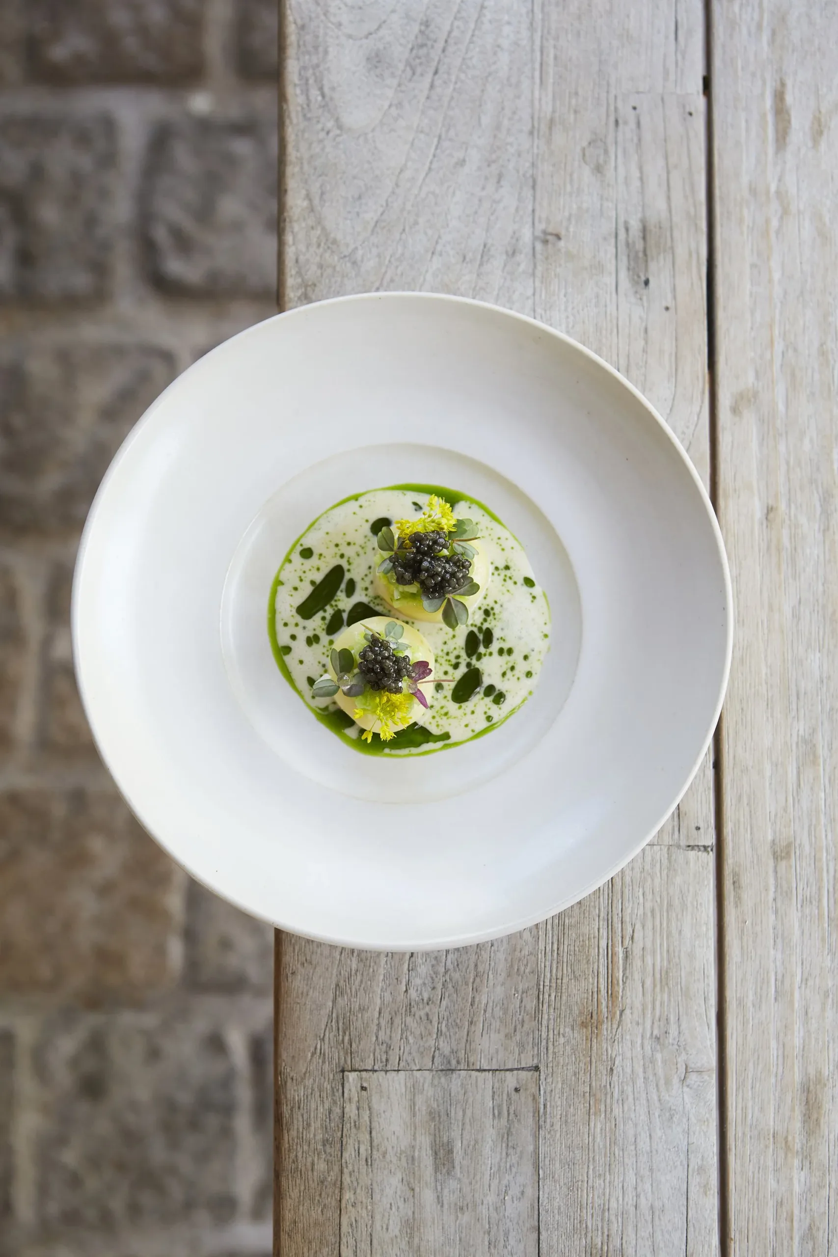 En fyldig og syrebalanceret sauce baseret på muslingefond, kærnemælk og creme fraiche. Reduktionen koncentrerer smagen, mens koldt smør monteres i for en let, luftig struktur. Afsluttes med sushi-eddike og dildolie for præcis syre og friskhed. Velegnet til fisk, skaldyr og grøntsagsretter.