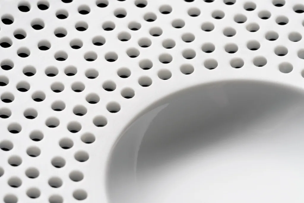 Cielo – Hvert hul bores manuelt i læderhårdt porcelæn og bearbejdes individuelt for maksimal præcision og karakteristisk lysgennemspil.