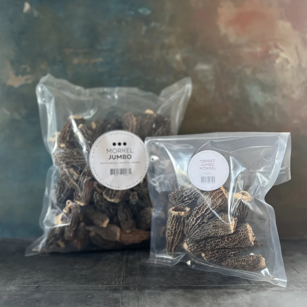 Tørrede morkler – Morchella ConicaMorkler er blandt de mest eftertragtede spisesvampe, og Morchella Conica regnes som en af de bedste. Svampen er kødfuld, intens i smagen og rig på umami, hvilket gør den særligt velegnet til det professionelle køkken.Morklerne håndsorteres nøje, og stokken trimmes ned til 0,5 cm for at…