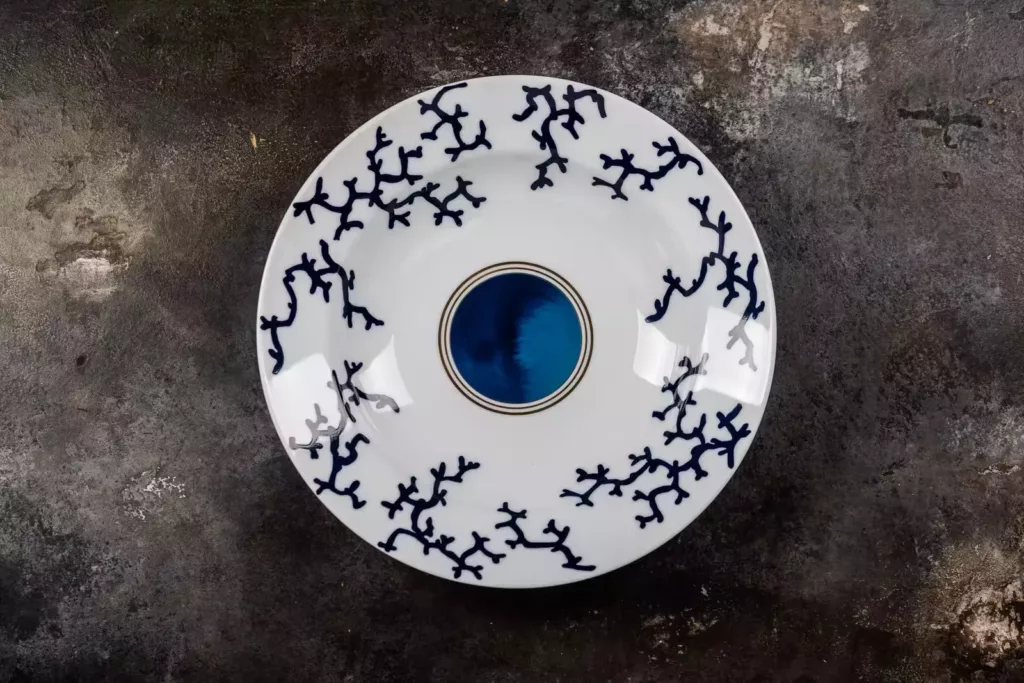 AbyssesCoupe Plate Flat 27 cm – n°1Flad coupe-tallerken med bred arbejdsfladeAbysses-kollektionen er skabt i samarbejde mellem kunstneren Aurore de la Morinerie og Raynaud. Serien tager udgangspunkt i havets dybder og store flader, hvor indigoblå nuancer møder det klare hvide Limoges-porcelæn. Udtrykket er teknisk og visuelt stærkt, designet til at fremhæve…