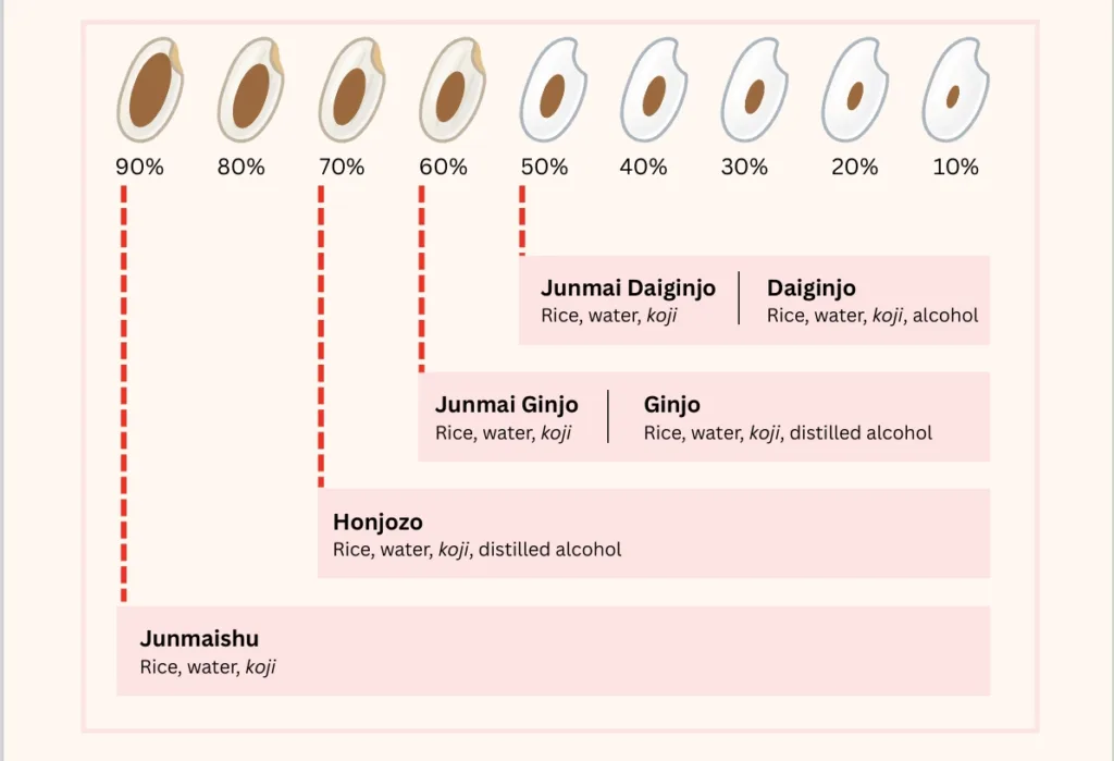 Når risen poleres i meget høj grad – som i daiginjo-kategorien – er det kun en lille, stivelsesrig kerne, der er tilbage. Dette giver ofte elegante, florale og raffinerede smagsprofiler, som er karakteristiske for mange daiginjo.