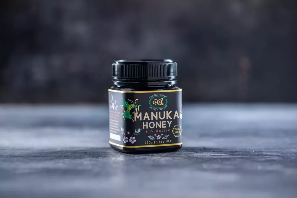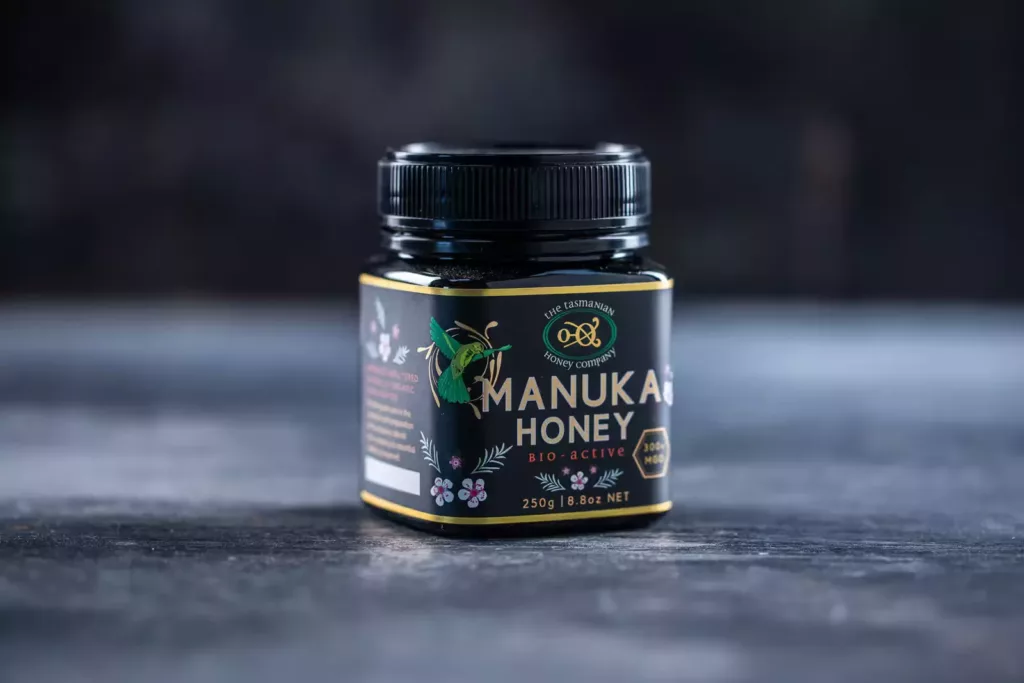 Manuka honningen kommer fra det Tasmanske Tea Tree, Leptosperum Scoparium.Ved hver produktion af Manuka honning måles indholdet af methylglyoxal, og honningen gradueres herefter i styrke afhængig af hvor højt indholdet er.Jo højere indholdet er jo mere eksklusiv er honningen.Smagen er samtidig helt intens og har noter af eng og lyng…
