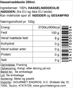 Hasselnøddeolie lavet på ristede hasselnødder.