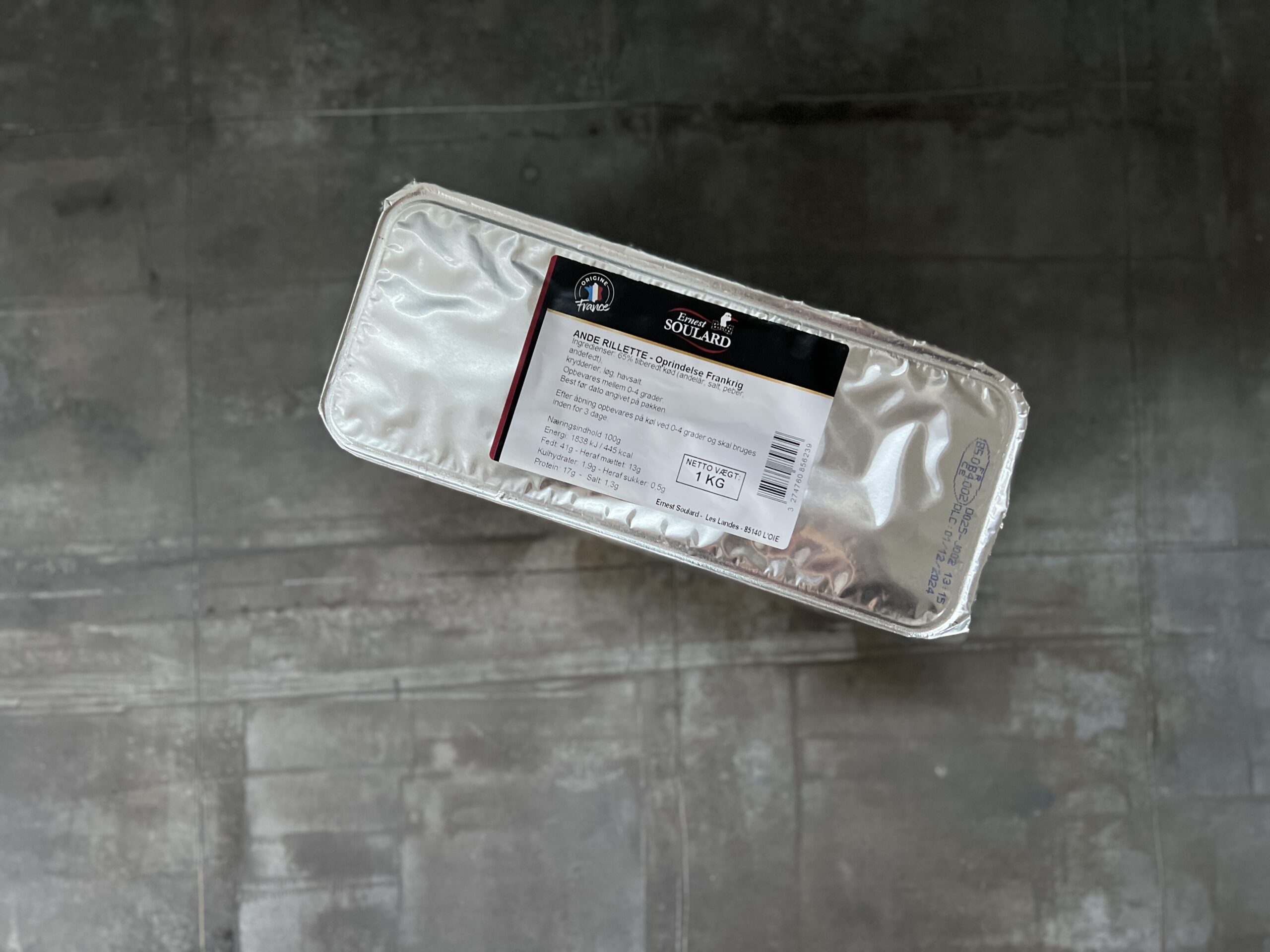Fremstilling: 65% tilberedt andelår, krydderier, løg, havsalt