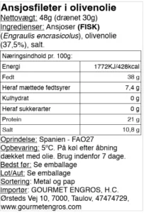 Certifikat: Mark of Guarantee - garanterer at ansjoserne er cantabriske. Dette er et kvalitetstegn, grundet den lange tradition og know-how i området.