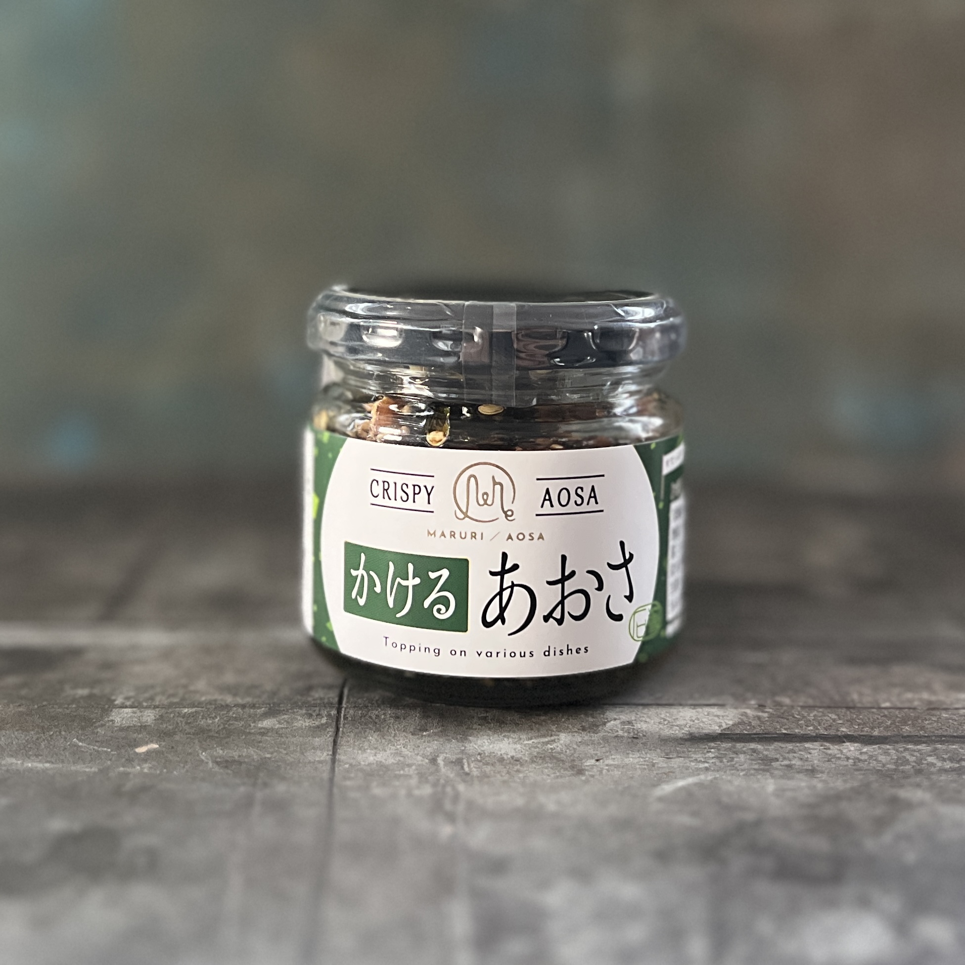 Et sprødt og aromatisk kondiment lavet af Aosa-tang (Monostroma nitidum), også kendt som “sea lettuce”. Aosa dyrkes primært i Aichi- og Shizuoka-regionerne og er et japansk superingrediens: naturligt rig på vitaminer C og A, fibre, mineraler og hydratiserende egenskaber – og samtidig helt uden kalorier.