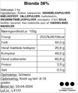 Bionda 36% – Hvid couverture chokolade – 2 kg