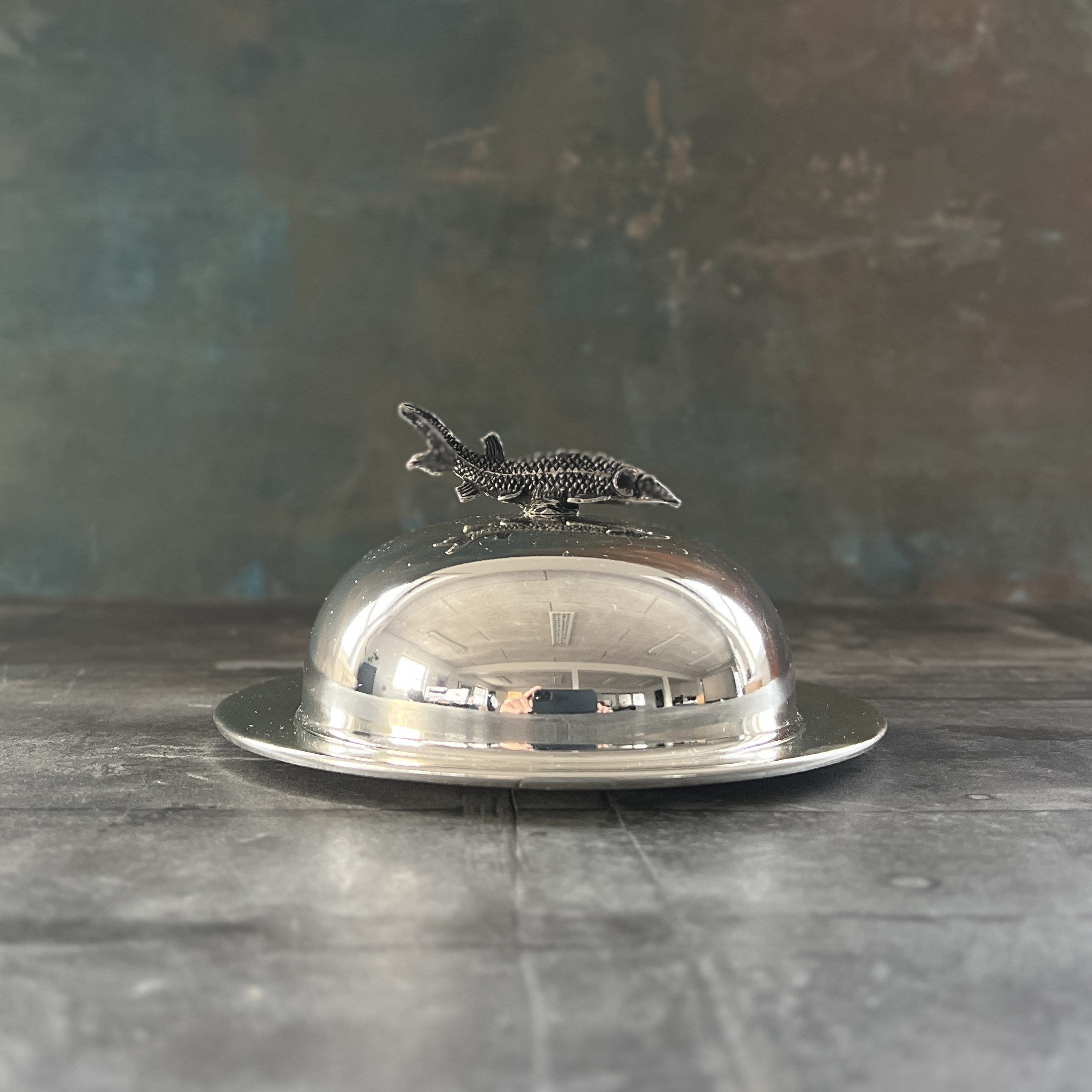 Denne caviarserver kombinerer funktionalitet med et raffineret udtryk. Serveren er udført i rustfrit stål og har et greb formet som en stør – en elegant detalje, der understreger forbindelsen til caviarens oprindelse.