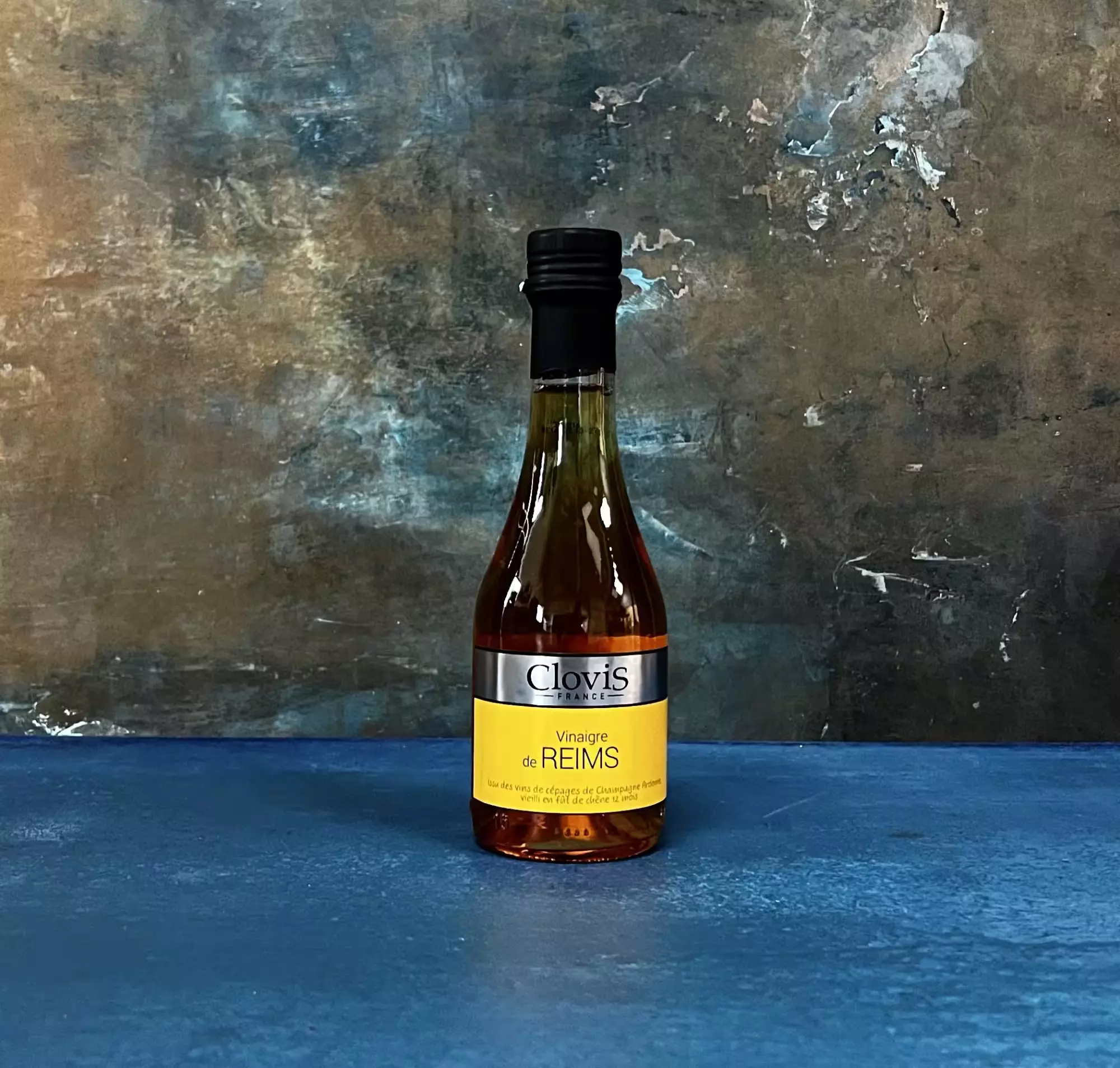 Denne champagne eddike er præsenteret i en smuk og stilfuld flaske.