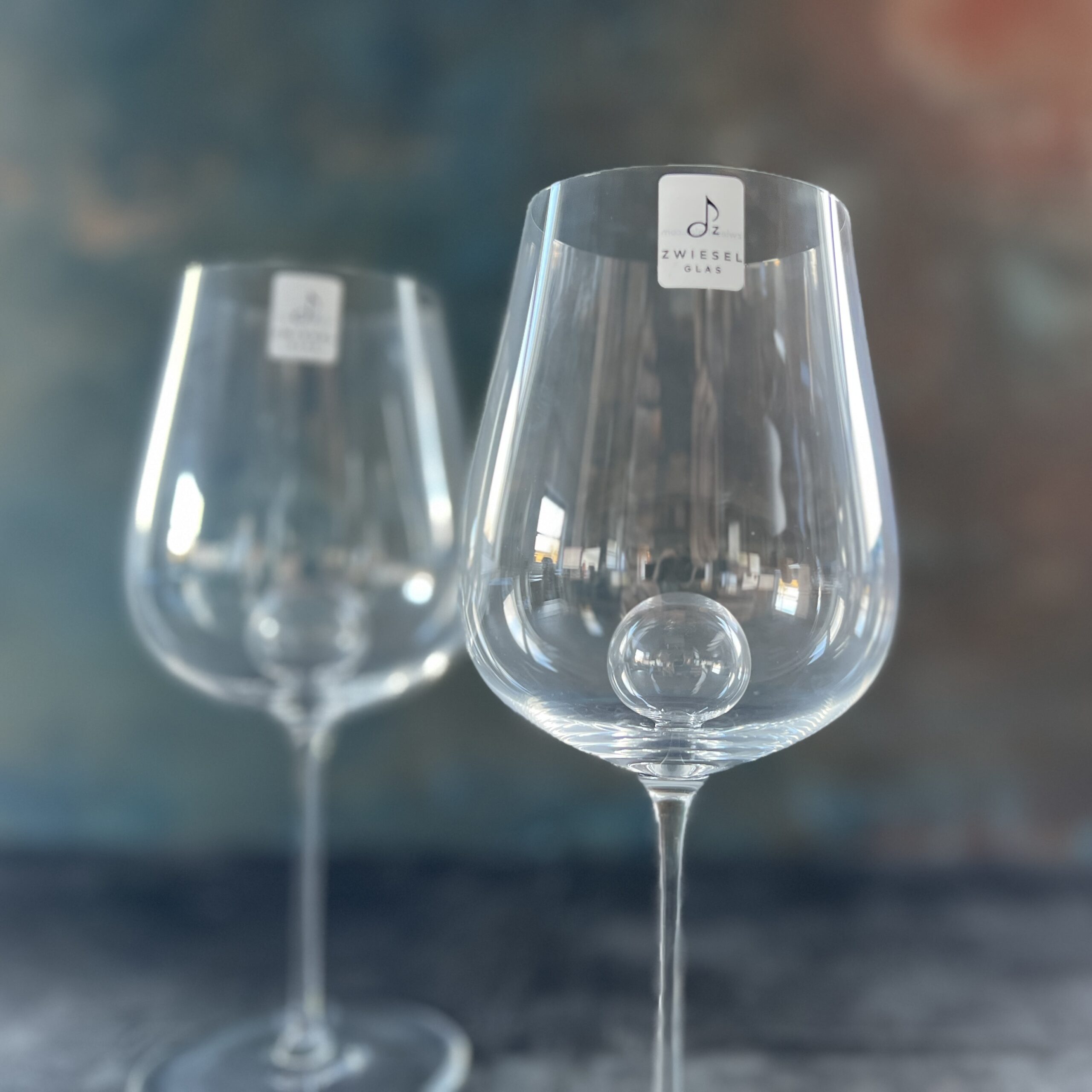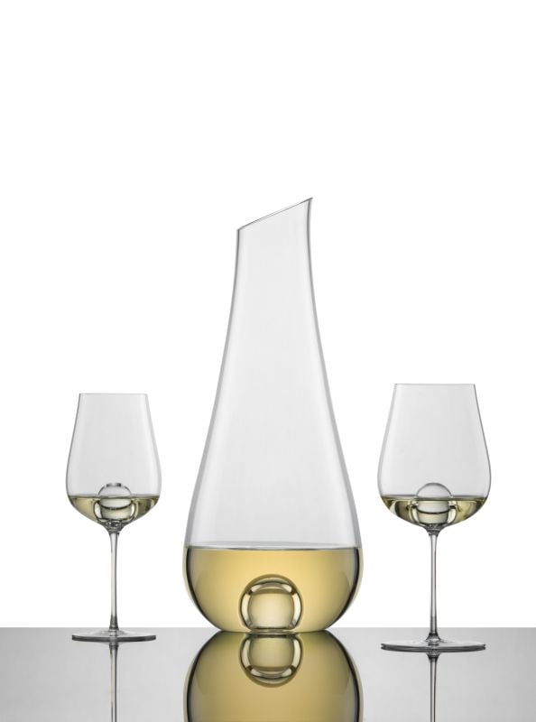 - Mundblæst hvidvinsglas med integreret dekanterkugle