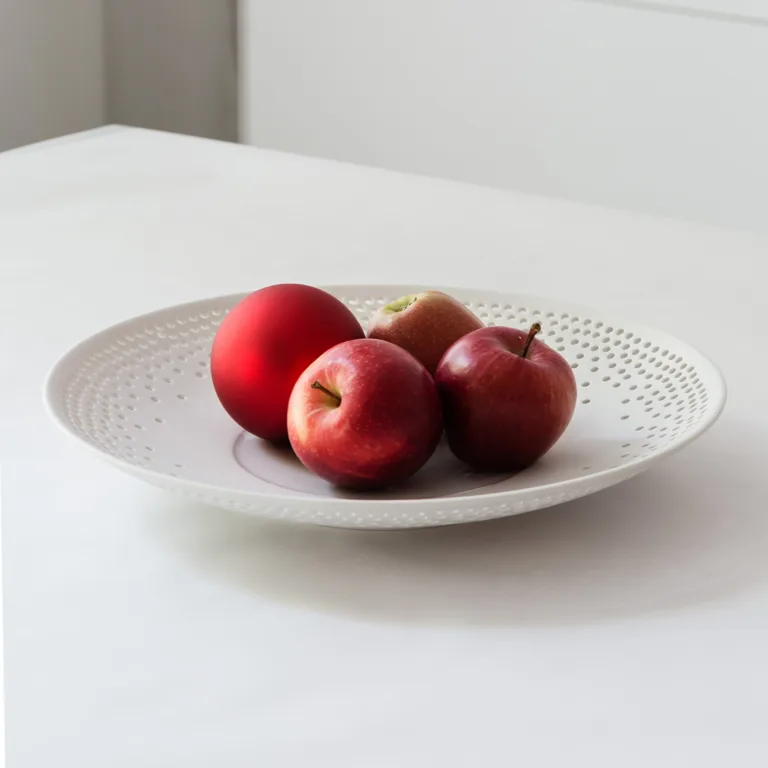 • Håndværk: randen perforeret i hånden – hver tallerken er unik