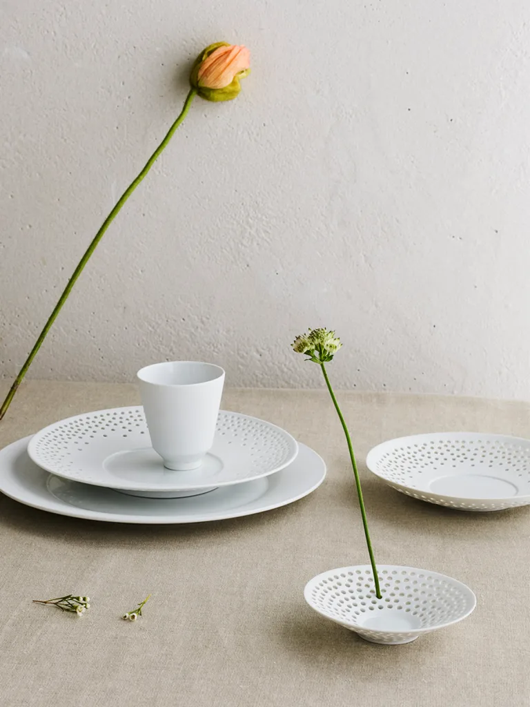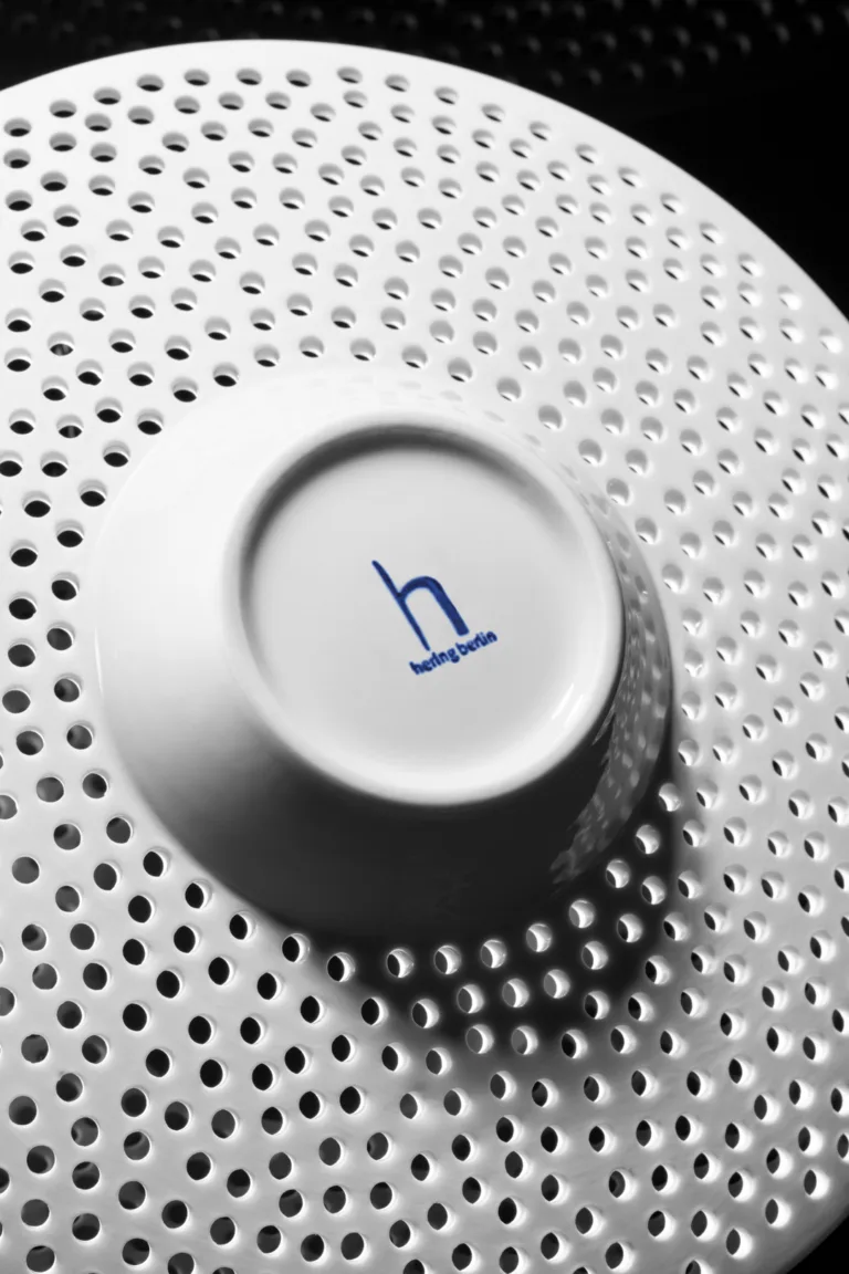 Høj underkop fra Hering Berlins Cielo-kollektion. Fremstillet i Biskuit, uglaseret porcelæn og håndperforeret, hvilket giver hver enkelt del sit eget unikke udtryk. Den glaserede inderside sikrer funktionalitet og holdbarhed.