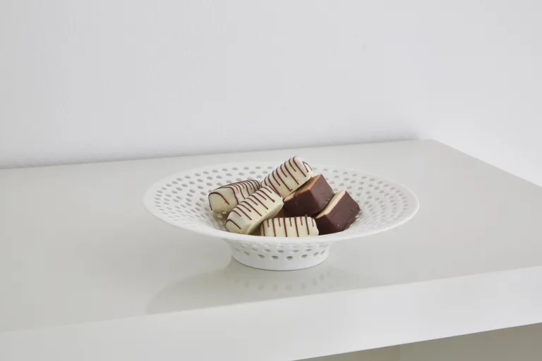 Cielo er en af deres mest krævende dekorationer. Hvert hul bores enkeltvis i det læderhårde, ubrændte porcelæn, hvorefter kanterne tilpasses med en skarp klinge i rustfrit stål og glattes med en fin svamp. Efter højbrænding ved op til 1400 °C poleres overfladen manuelt med et diamantbelagt værktøj.