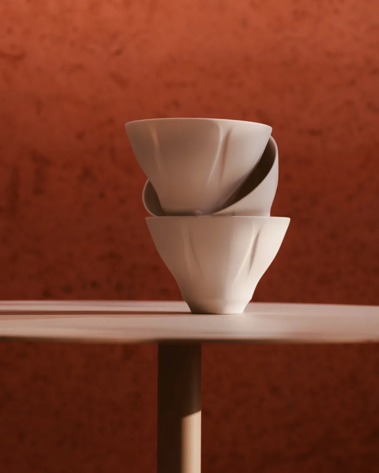 - Materiale: biscuit-porcelæn med struktureret kant, glaseret inderside