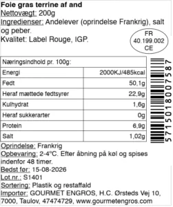 Foie gras serveres normalt i skiver på ca. 1 cm tykkelse, som lægges på en toast eller en kold tallerken. Smør ikke foie gras ud – læg den blot ovenpå en skive brød. Med hensyn til mængde anbefaler vi ca. 50 til 70 g pr. person som forret og 100 til 130 g som hovedret.