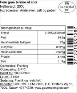 Foie gras serveres normalt i skiver på ca. 1 cm tykkelse, som lægges på en toast eller en kold tallerken. Smør ikke foie gras ud – læg den blot ovenpå en skive brød. Med hensyn til mængde anbefaler vi ca. 50 til 70 g pr. person som forret og 100 til 130 g som hovedret.