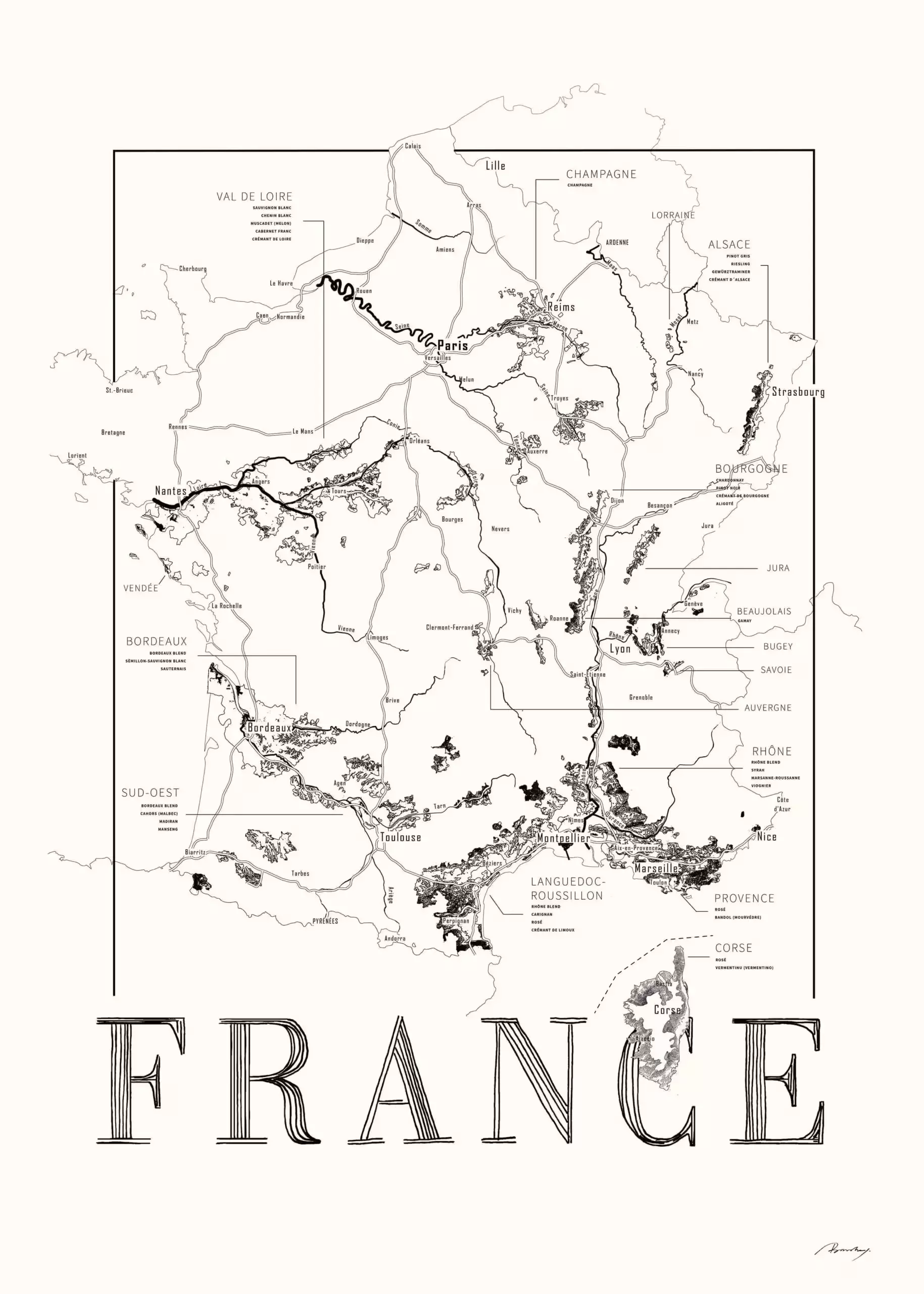 Frankrig Vinkort 50×70 cm
