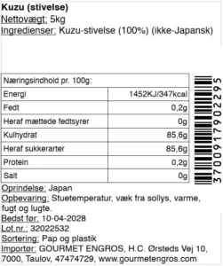 Hon kuzu opløses i koldt vand, inden det tilsættes retten. Ved opvarmning tykner det hurtigt og giver en stabil og glansfuld struktur, der gør det særligt velegnet til fine saucer, klare supper og cremede desserter.