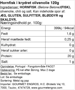 - Hornfiskefileter i olivenolie med mild chilivarme