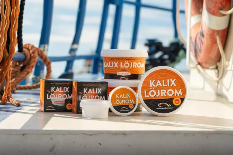 Fremstilling: Kalix löjrom er fiskeæg som kommer fra fisken heltling som fanges i Bottenviken (Botten bugten) helt oppe i den nordligste østersø