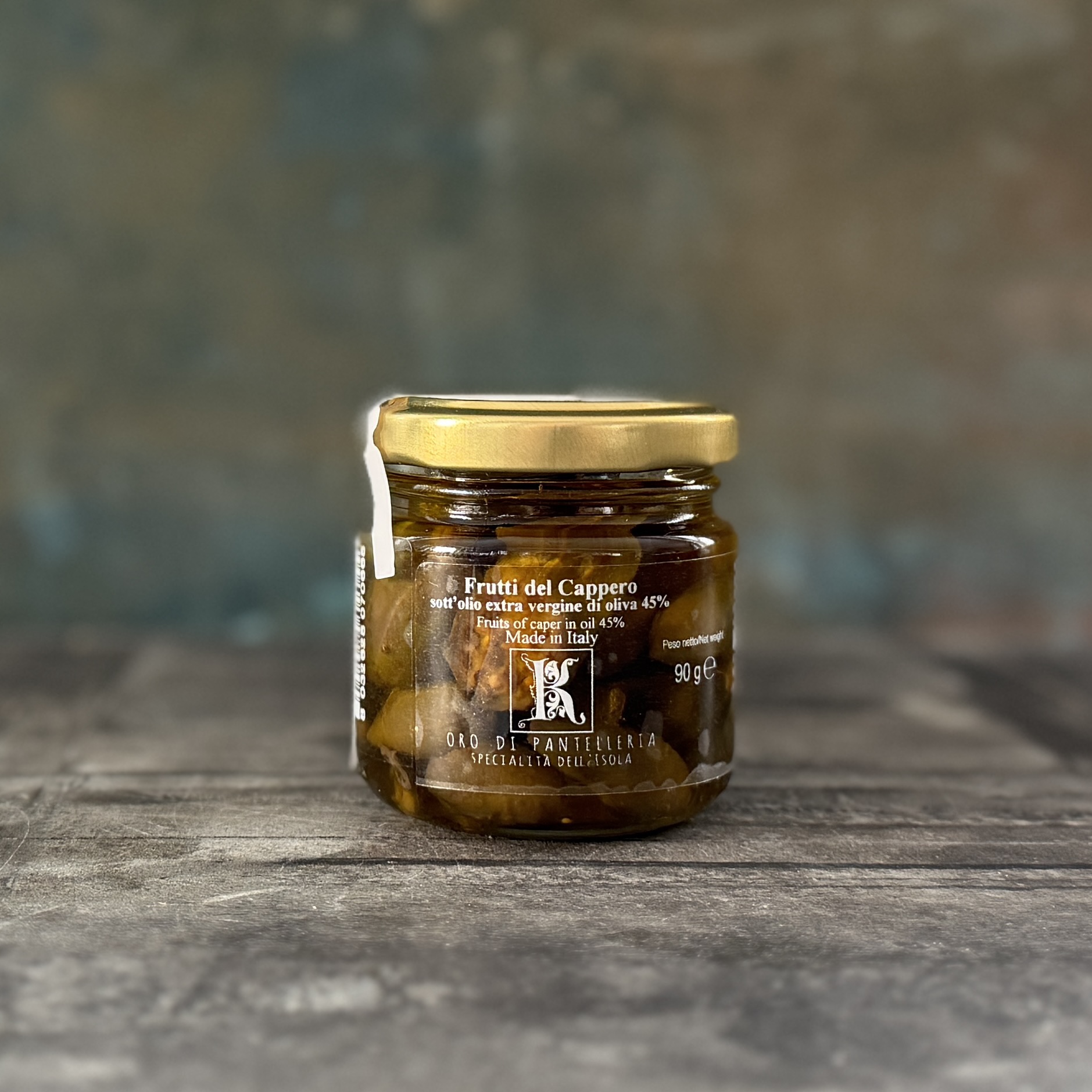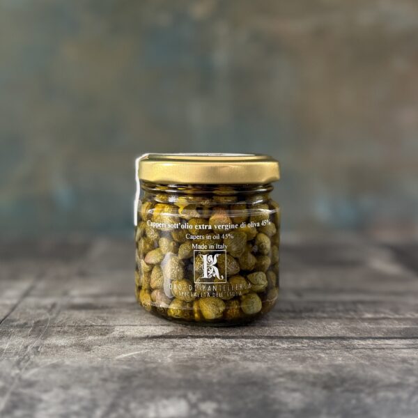 Disse kapersbær i ekstra jomfruolivenolie fremstilles med udgangspunkt i saltede eller lagrede kapersbær, som først vaskes grundigt for at justere saltbalancen. Herefter drænes de og konserveres i ekstra jomfruolivenolie, som afrunder smagen og bevarer bærrets faste struktur.
