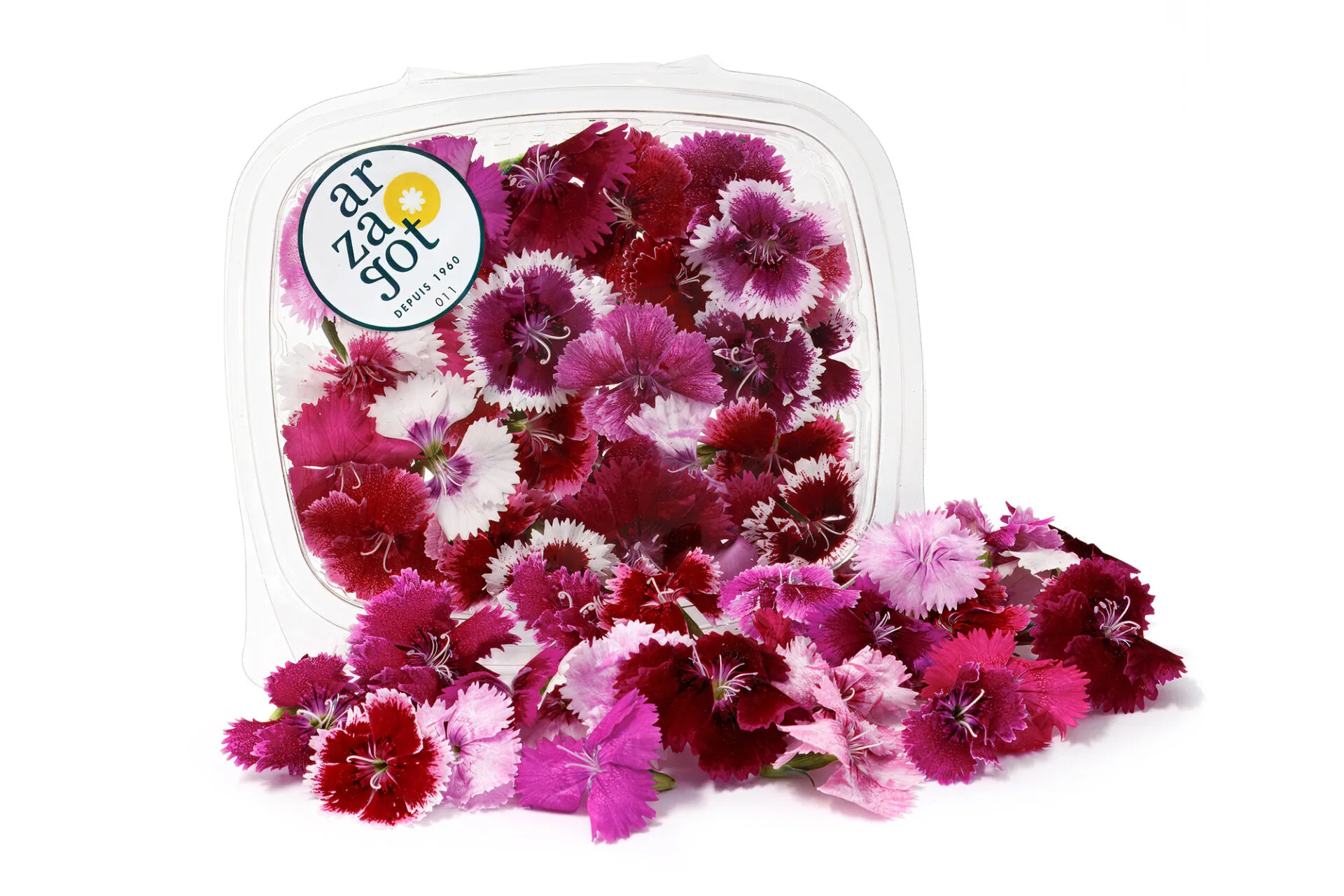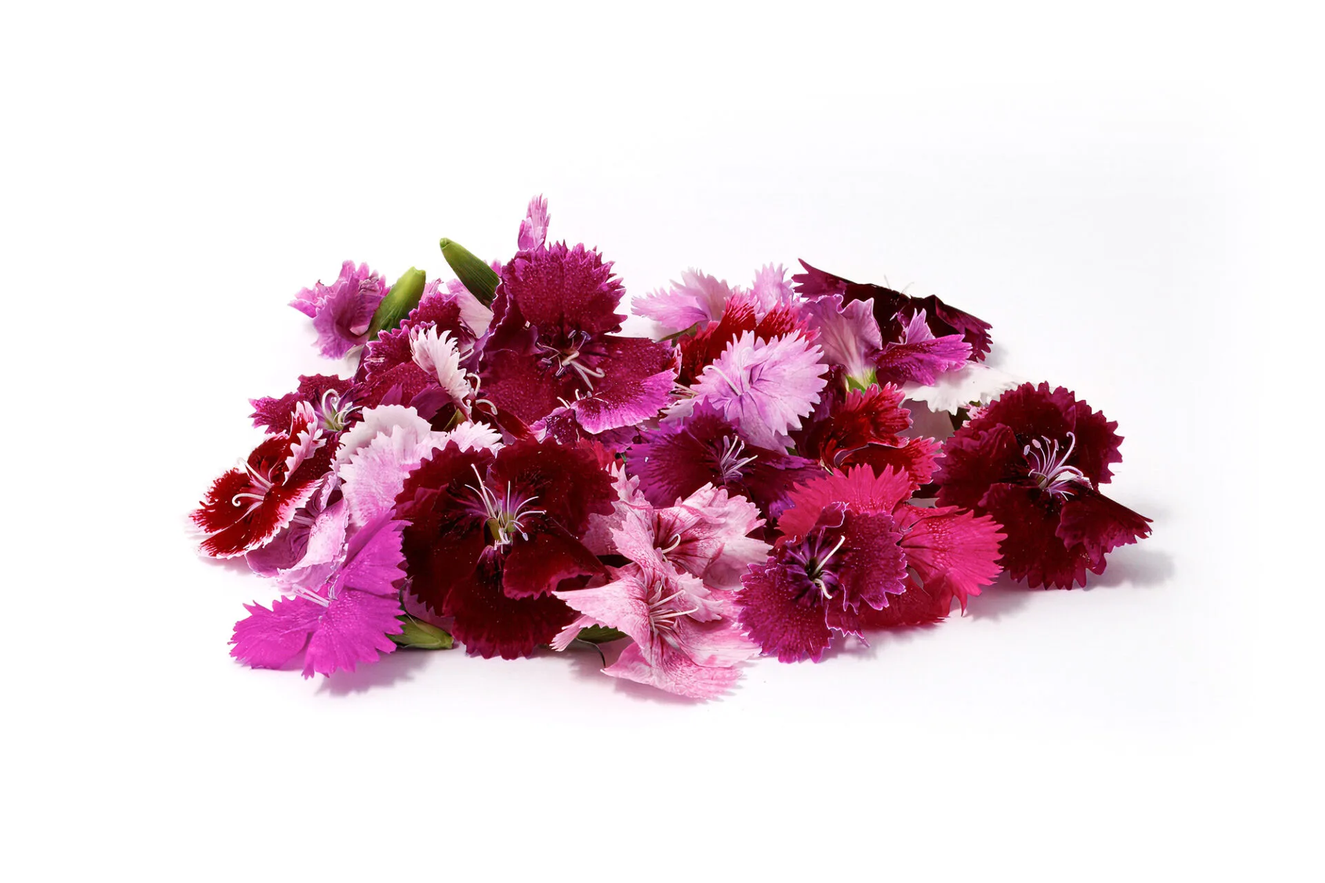 Kinesisk nellike (Dianthus chinensis) er en spiselig blomst med karakteristiske tandede kronblade. Blomsterne forekommer i flere farver, blandt andet rosa, rød og hvid, og giver et dekorativt udtryk i anretninger.