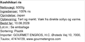 Anvendelse: sushi, onigiri (risbolle) og risotto. Denne ris bruges også ofte til at lave sake og mirin