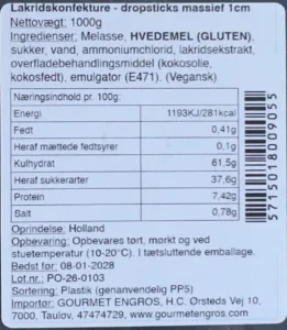 Lakridskonfekture – dropsticks – 1cm – 1kg