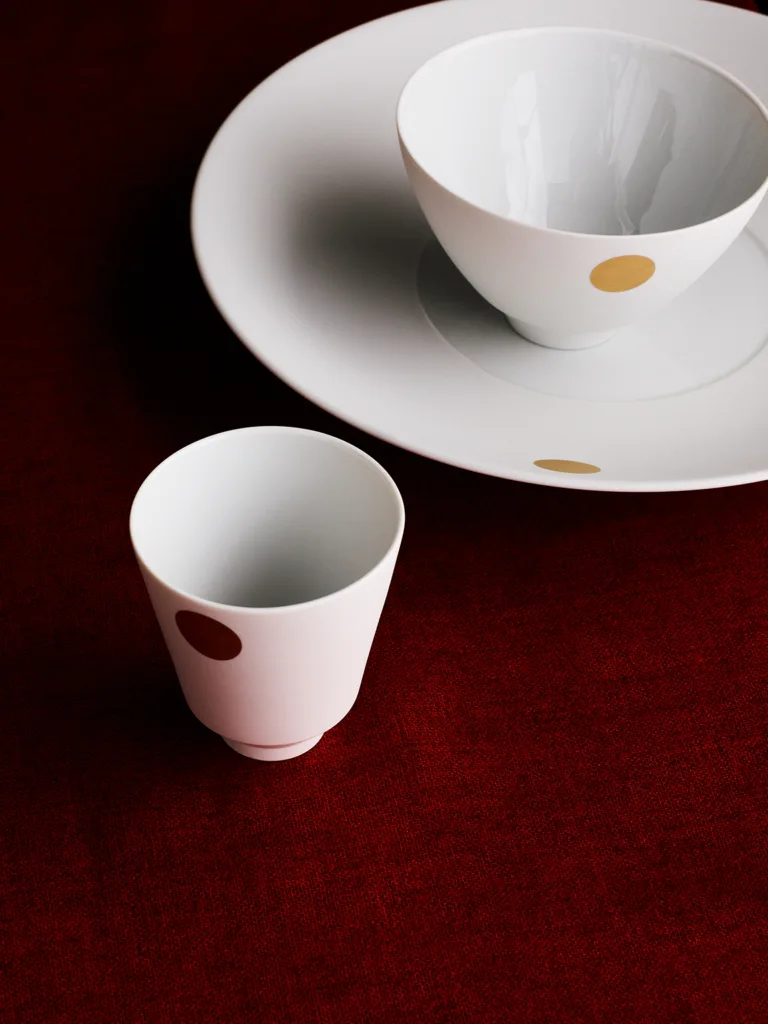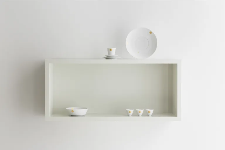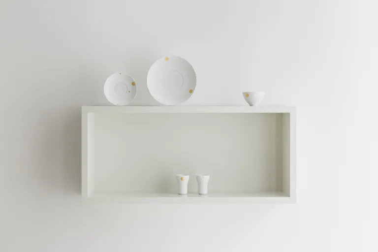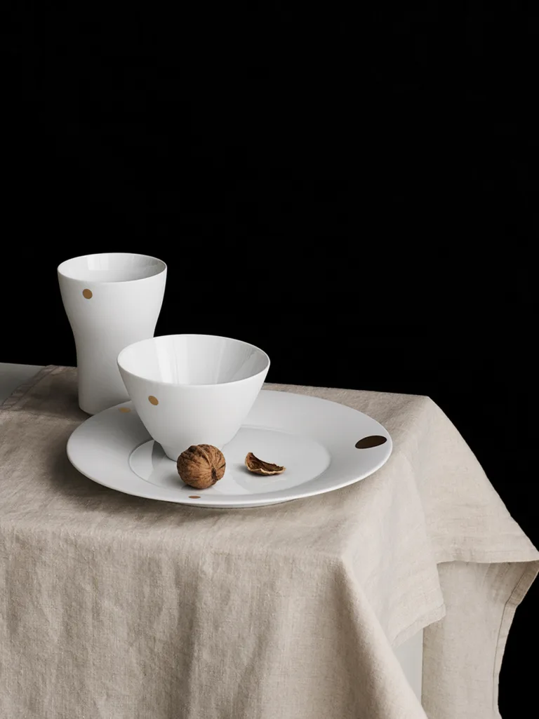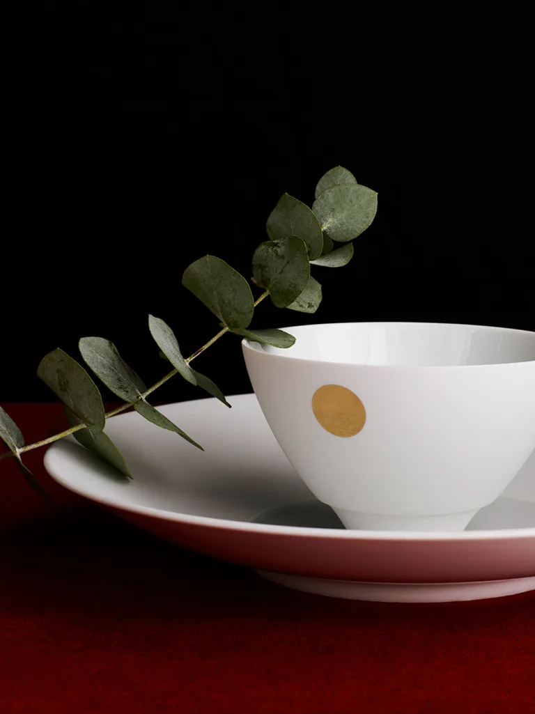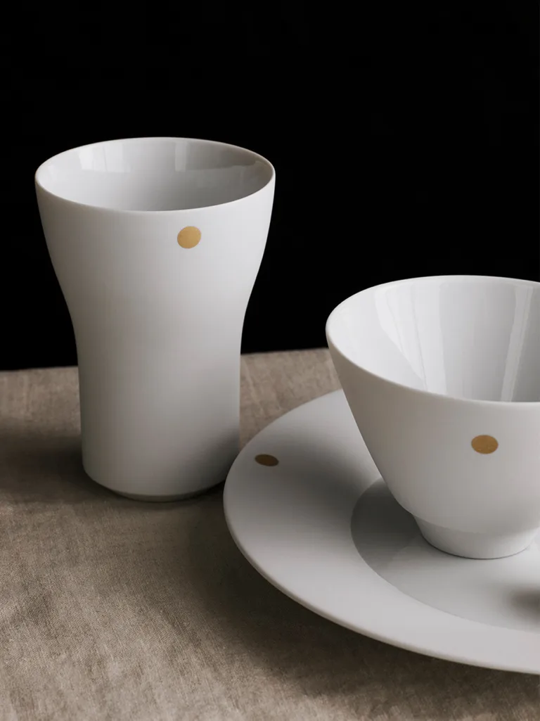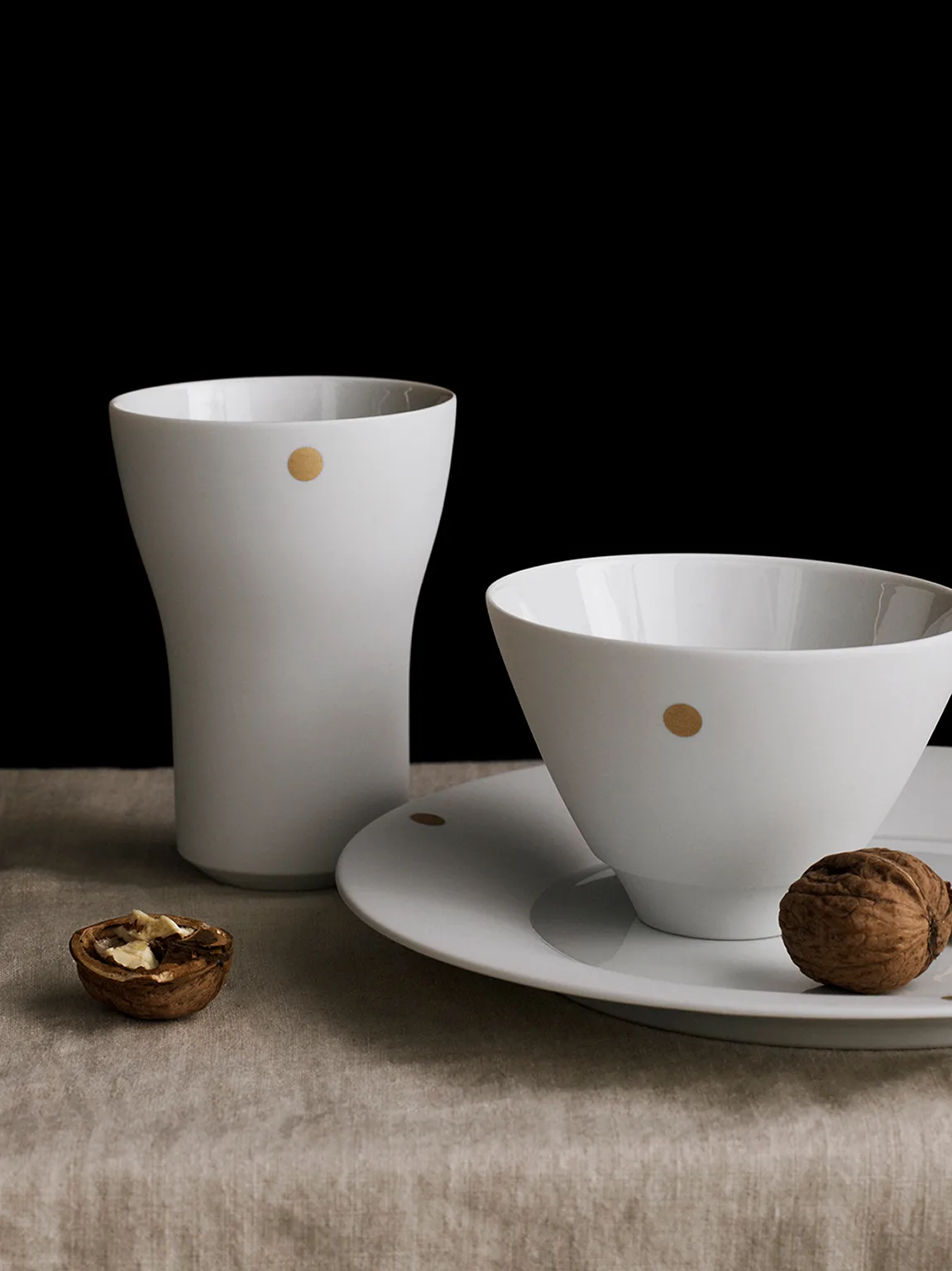 - Design: kontrast mellem mat porcelæn, ædelmetal og blank glasur