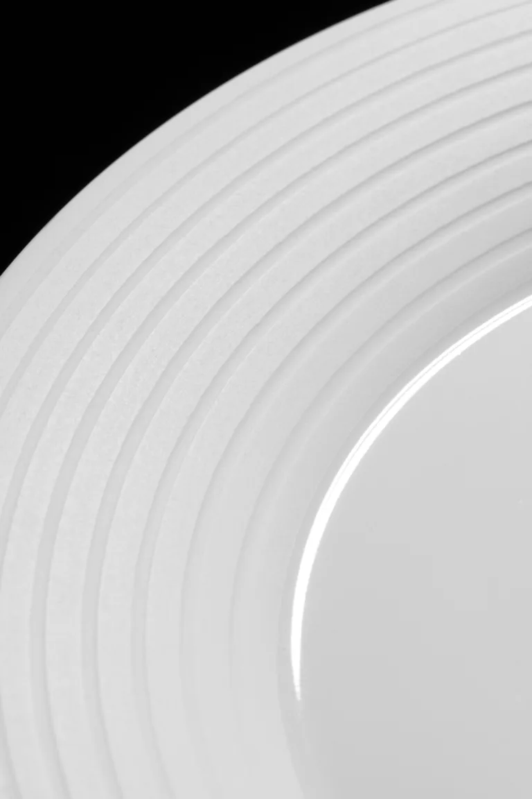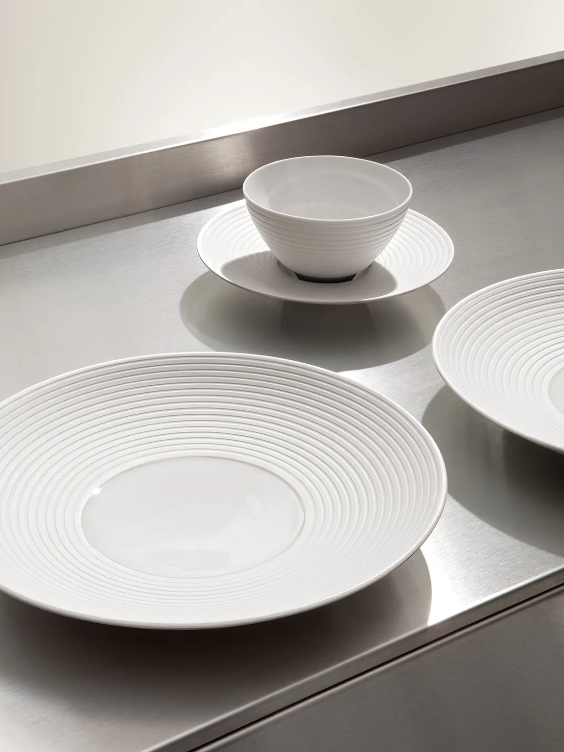 Gourmet tallerken fra Hering Berlins Pulse-kollektion. Fremstillet i Biskuit, uglaseret porcelæn, hvor overfladen er malet og derefter håndvasket for at skabe en unik taktil dekoration. Resultatet er en tallerken, der kombinerer funktionalitet med kunstnerisk udtryk.