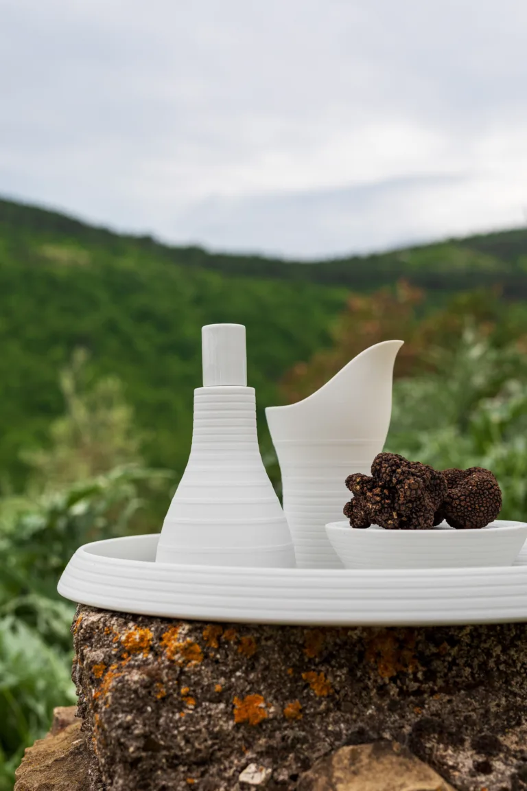 Hering Berlins porcelænsstel og krystalglas er skabt til at vække sanserne – en fryd for øjet og en fornøjelse at røre ved. Materialerne er nøje udvalgt og håndværket forfiner traditioner, der strækker sig over århundreder. Resultatet er unikt service, hvor hver tallerken fremstår som et lille kunstværk og fungerer både som funktionelle redskaber og som skulpturelle objekter.