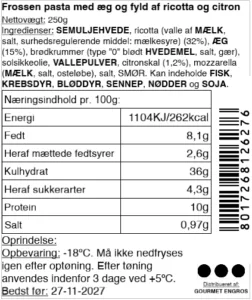 Ricotta og citron er en klassisk kombination i det italienske køkken, der bringer friskhed og finesse til enhver servering. Den frosne saccottini gør det nemt at arbejde med autentisk, håndværksmæssig pasta året rundt – med kvalitet, der matcher frisklavet.