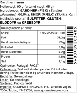 Sardinerne er nøje udvalgt og konserveret i smør, hvilket giver en rund, fyldig smag og en saftig, blød tekstur. Smørret understøtter fiskens naturlige karakter uden at overdøve den.