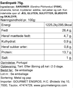 Fremstilling: Sardin patéen tilberedes med løg, hvidløg, gulerødder, persille og hytteost.