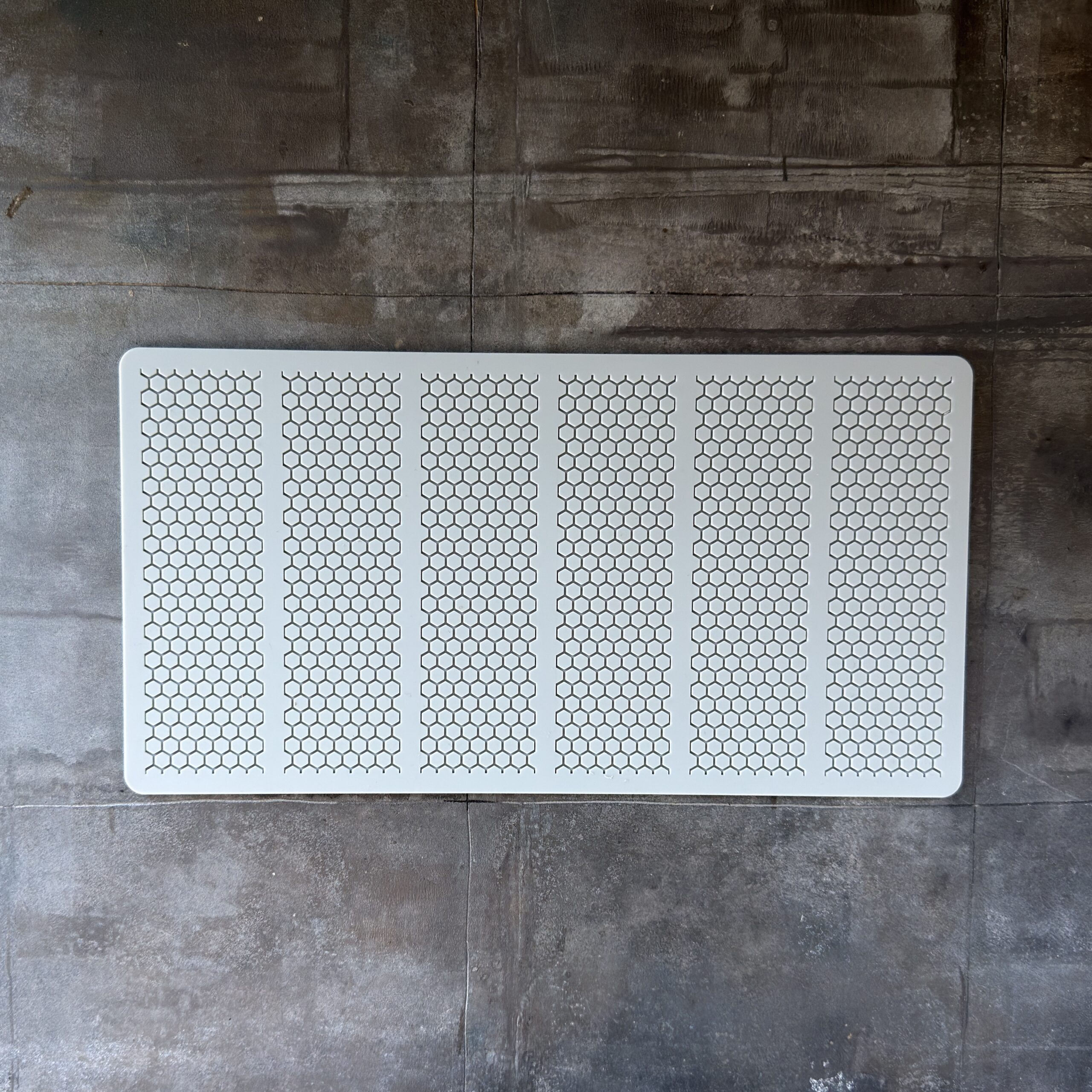 Fleksibel silikoneform udviklet til fremstilling af sprøde tuiles med ensartet form og tykkelse. Formen sikrer en jævn bagning og gør det nemt at løsne det færdige resultat uden at beskadige strukturen.