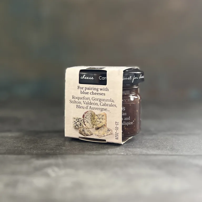 Denne confiture leverer både dybde, tekstur og varme kryddernoter, der spiller perfekt op mod de salte og pikante kvaliteter i blå oste.