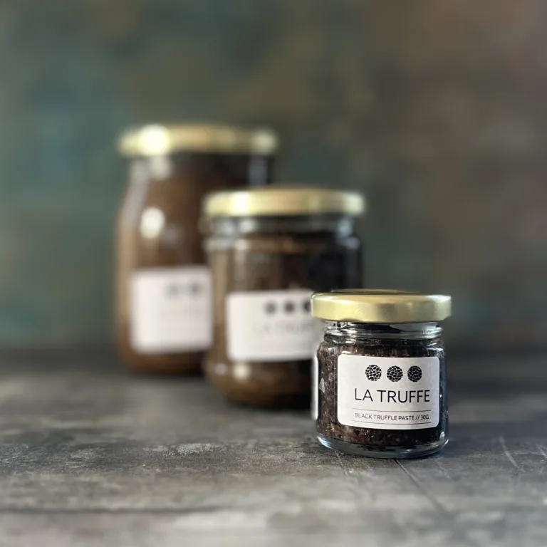 Sort trøffelpaste fremstilles blandt andet af Tuber Aestivum Vitt – sort sommertrøffel. Denne pasta er berømt for sin intense nødde-og jordagtige smag, der giver en umiskendelig dybde til retter som pasta, risotto, saucer og meget mere.