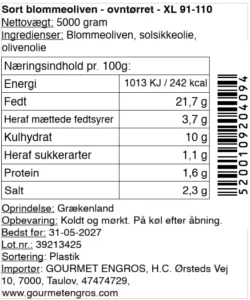 - Størrelse: 120–140 oliven pr. kilo