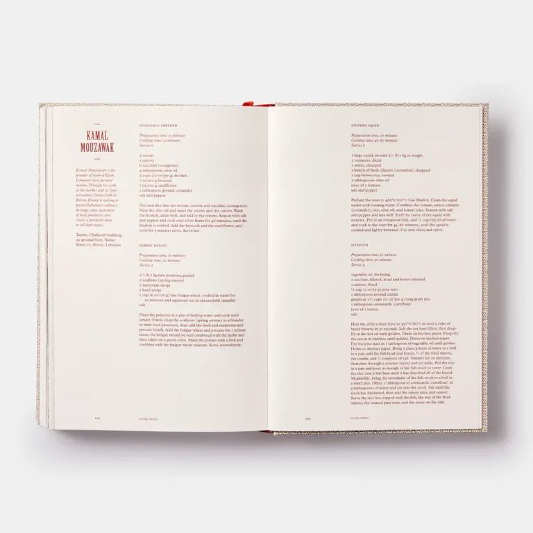 The Lebanese Cookbook beskriver desuden Libanons geografiske og kulturelle madtraditioner – fra kysten mod Middelhavet til bjergområderne i nord – og viser, hvordan råvarer og opskrifter er knyttet til sæsoner og regioner.