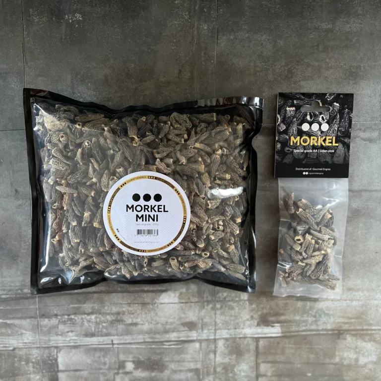 Håndsorterede – vores tørrede morkler leverer maksimal anvendelighed og dyb, nøddeagtig umami. Perfekte til farsering, saucer og retter, hvor intensitet og tekstur tæller. En sjælden svamp, gjort tilgængelig for dig, der arbejder med gastronomi på højt niveau.