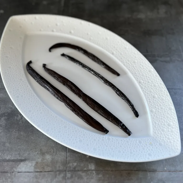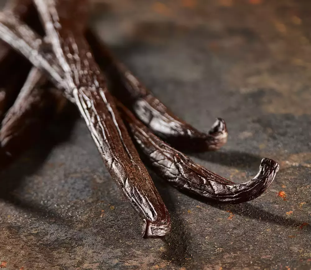 Tahiti-vanilje fra Bora Bora, Grand Cru-kvalitet med dybe noter af sveske, lakrids og karamel – modnet naturligt på planten for maksimal kompleksitet.