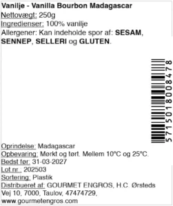 Eller Bourbon-vanilje fra Madagaskar, en mere prisvenlig favorit med klassisk sødme og let røg, perfekt til bagværk, creme og is.