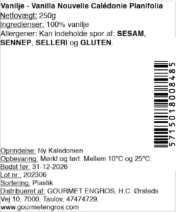 Vaniljen fra Ny Kaledonien udmærker sig ved sin komplekse duft og naturlige sødme, og dens høje indhold af vanillin gør den til en favorit blandt konditorer og dessertkokke, der ønsker maksimal aroma og autenticitet i deres kreationer.