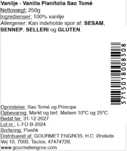 Eller Bourbon-vanilje fra Madagaskar, en mere prisvenlig favorit med klassisk sødme og let røg, perfekt til bagværk, creme og is.
