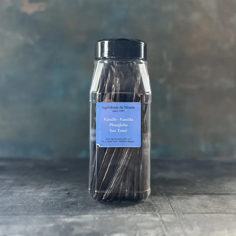 Vanilla Planifolia São Tomé repræsenterer en unik terroir-vanilje – intens, sød og med en markant krydret karakter. Den er et fremragende valg til kokke og konditorer, der ønsker autentisk aroma med dybde og kompleksitet.