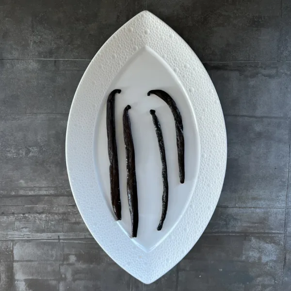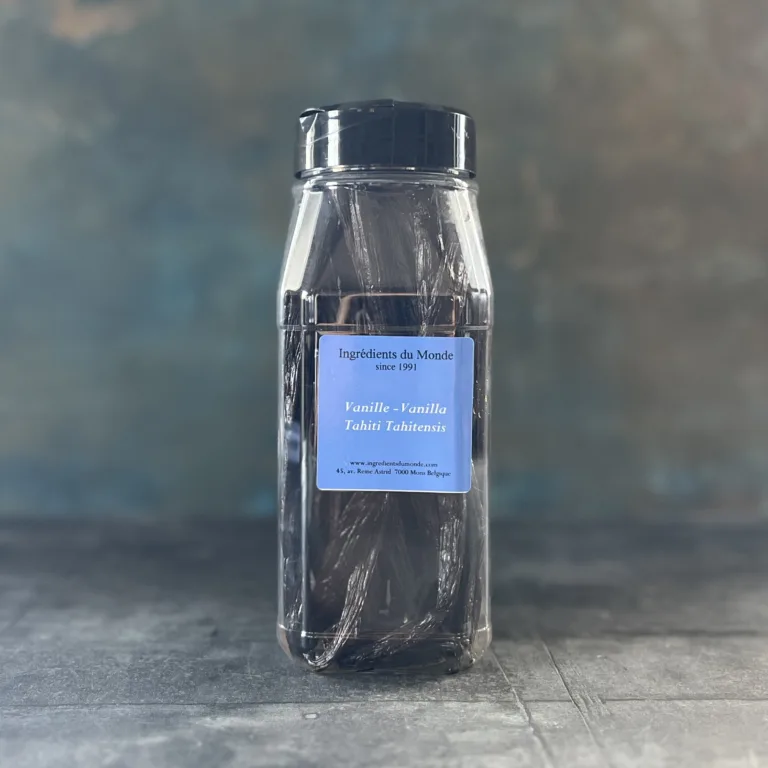 Tahiti-vanilje fra Bora Bora, Grand Cru-kvalitet med dybe noter af sveske, lakrids og karamel – modnet naturligt på planten for maksimal kompleksitet.
