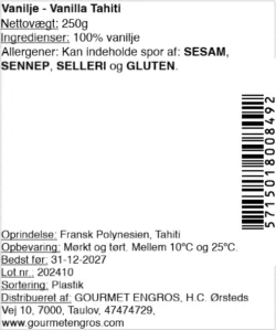 Vanilla Tahitensis – Tahiti, Fransk Polynesien – 250 g