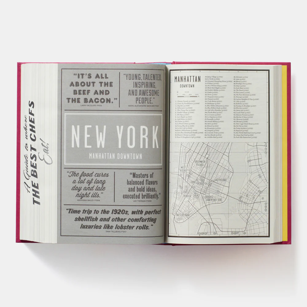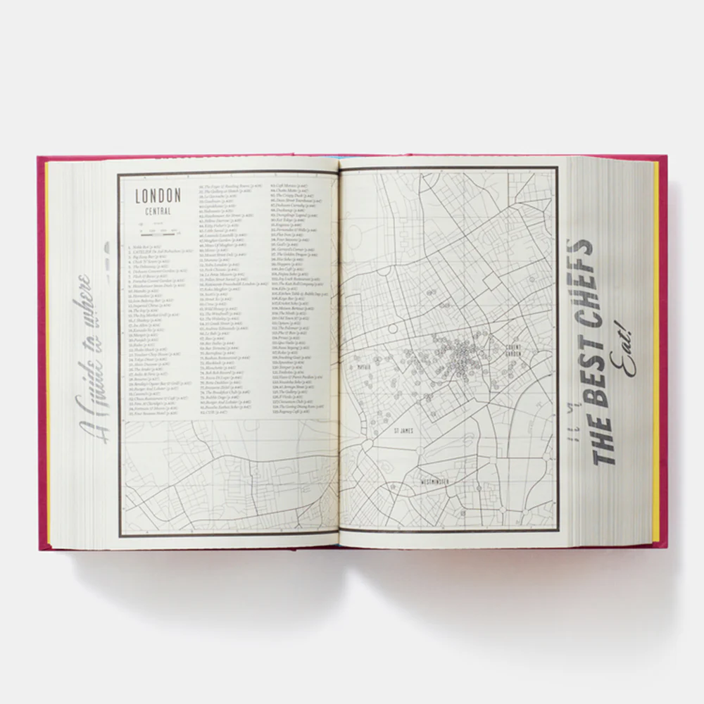 Bogen er inddelt efter geografiske regioner og giver et overblik over, hvor de mest anerkendte kokke spiser, når de selv rejser. Læseren får et sjældent indblik i gastronomiens inderkreds – med tips fra navne som Yotam Ottolenghi, Yoshihiro Narisawa, Jason Atherton, Helena Rizzo, Stephen Harris og mange flere.