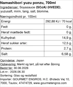 Alt i alt er namashibori yuzu ponzu sauce en velsmagende og alsidig sauce, som giver et japansk touch til enhver ret.